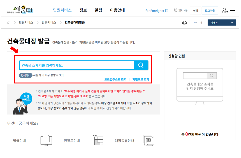 - 정확한 주소 입력: 해당 건축물의 정확한 주소를 입력해야 원하는 대장을 발급받을 수 있습니다.